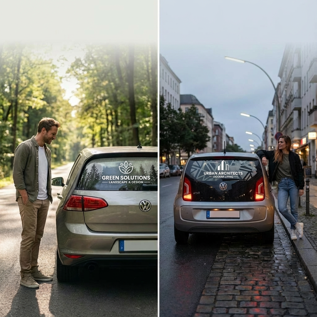 Setzen Sie wirkungsvolle Akzente auf Ihrer Heckscheibe – mit maximaler Werbewirkung und voller Funktionalität.
