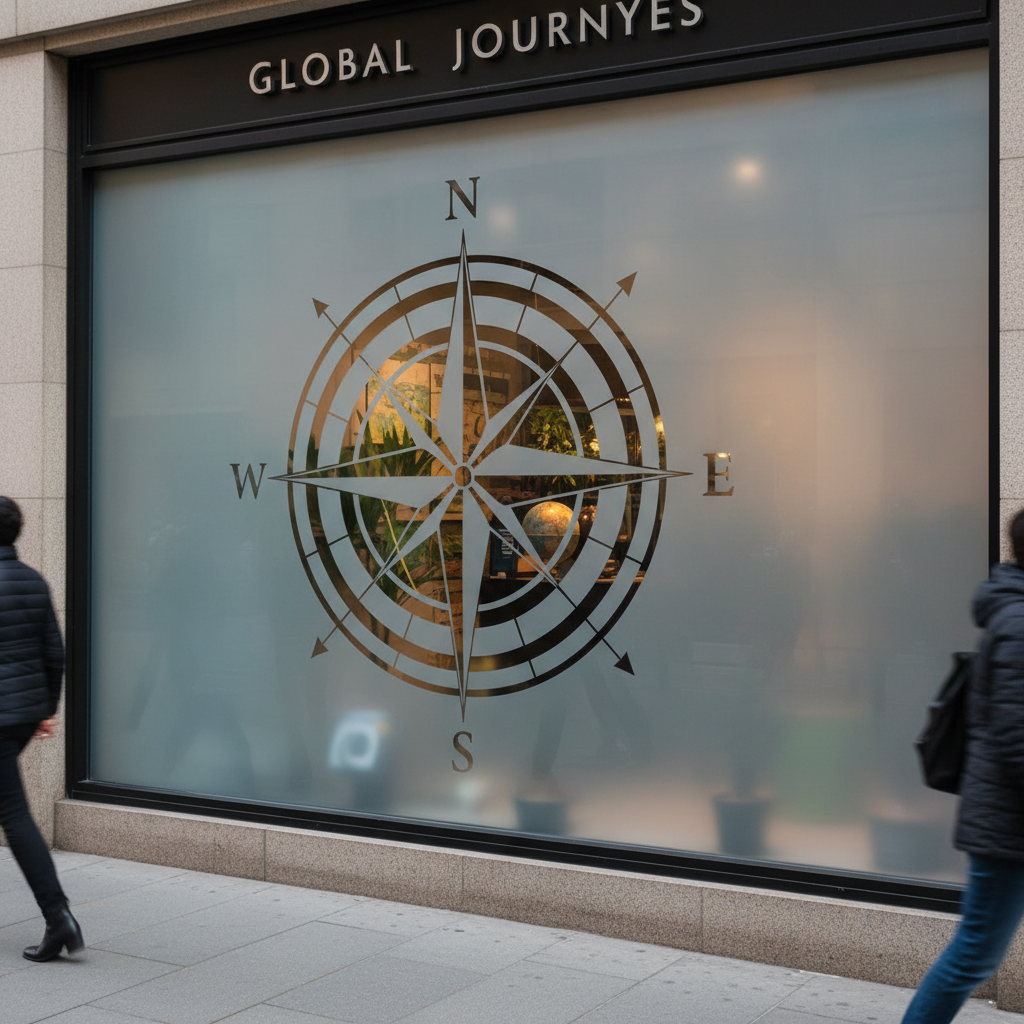 Die verwendete Folie vom MacTac ist eine transluzente Hochleistungsfolie für den Innen- und Außeneinsatz auf Fenstern oder anderen Glasflächen, sowie auf Spiegeln. Es ergeben sich interessante Effekte, die optischen Ätzungen, Sandstrahlbehandlungen oder Frostbeschlag zum Verwechseln ähneln, aber sauberer und kostengünstiger zu verwirklichen sind.